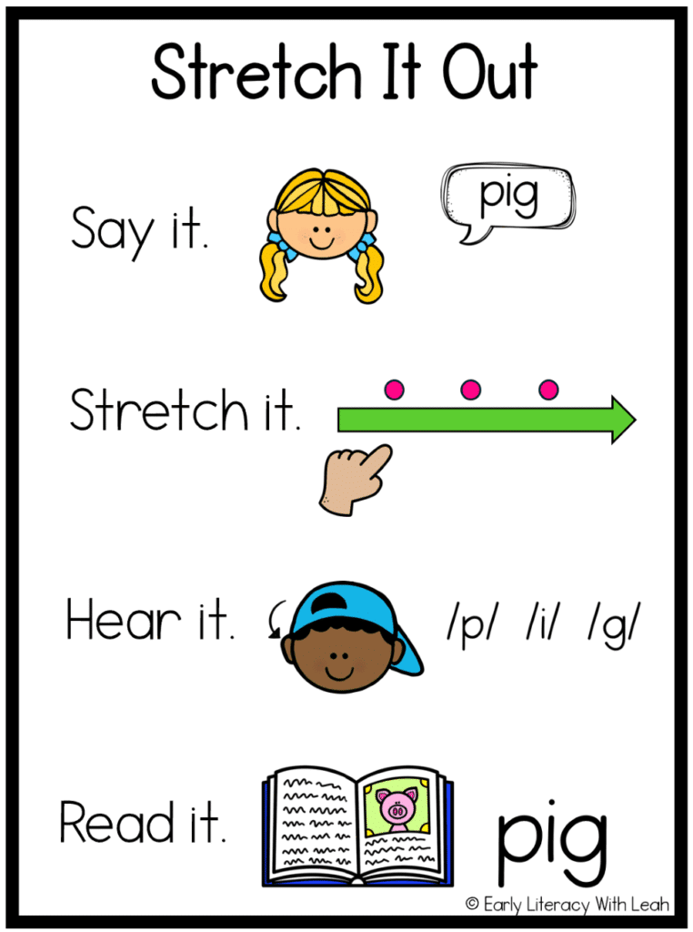 – Say It & Stretch It: Emphasize each sound and write corresponding letters.